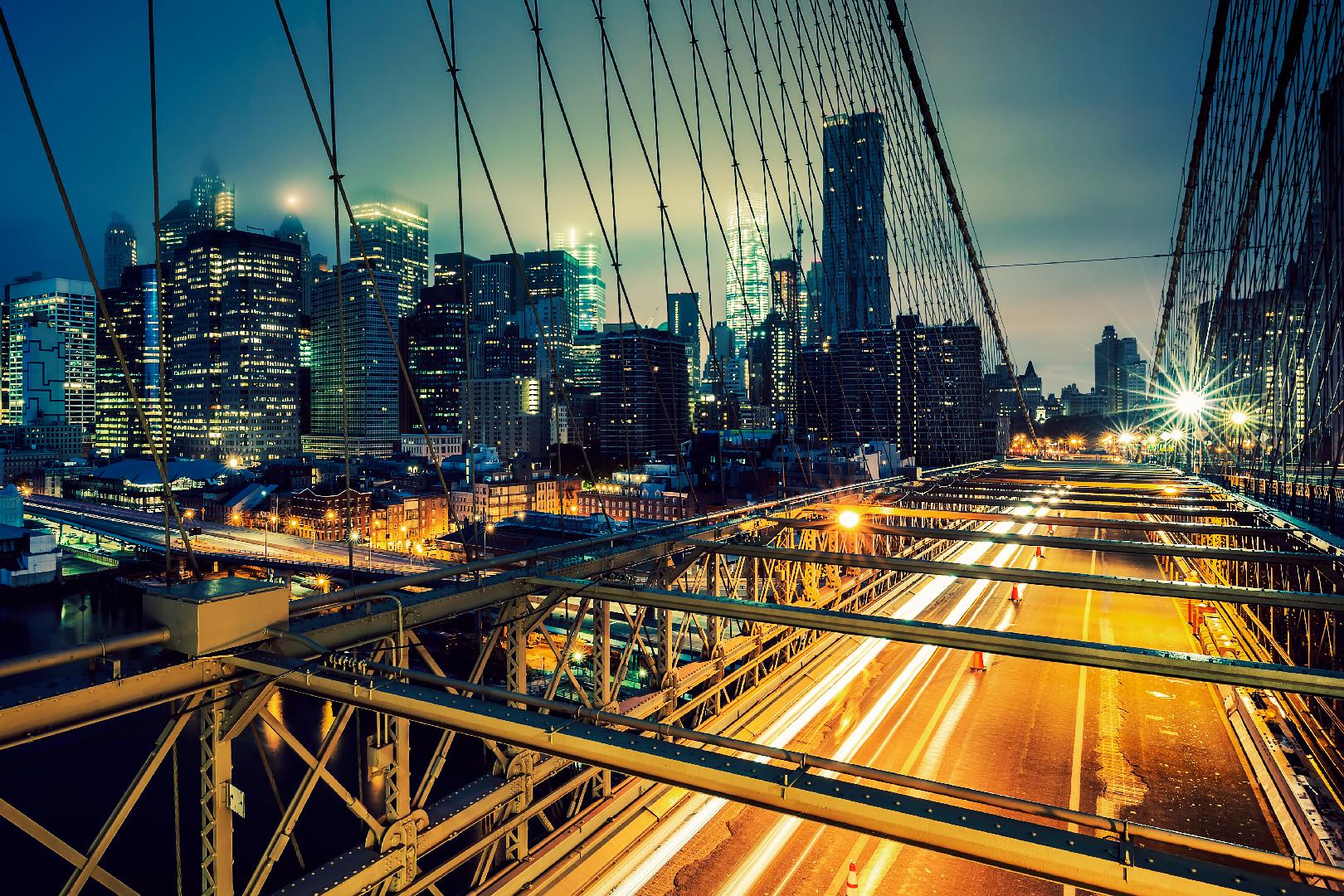 Ponte di Brooklyn: completato nel 1883 su progetto dell’ingegnere tedesco John Augustus Roebling, è il primo ponte costruito in acciaio e ha rappresentato per lungo tempo il ponte sospeso più grande al mondo. Attraversando il fiume East River, collega tra di loro l’isola di Manhattan e il quartiere di Brooklyn a New York.