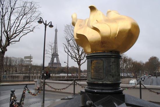 Fiamma della libertà: è un monumento situato nell’VIII arrondissement di Parigi, poco lontano dal tristemente conosciuto ponte dell’Alma, dove nel 1997 perse la vita in un incidente stradale Lady Diana.La fiamma rappresenta una riproduzione a grandezza reale della torcia in mano alla statua della libertà posta all’entrata del porto di New York. Il monumento, misura 3,5 metri, e si compone di una scultura rappresentante una fiamma in rame dorata riposta su una base di marmo grigio e nero.