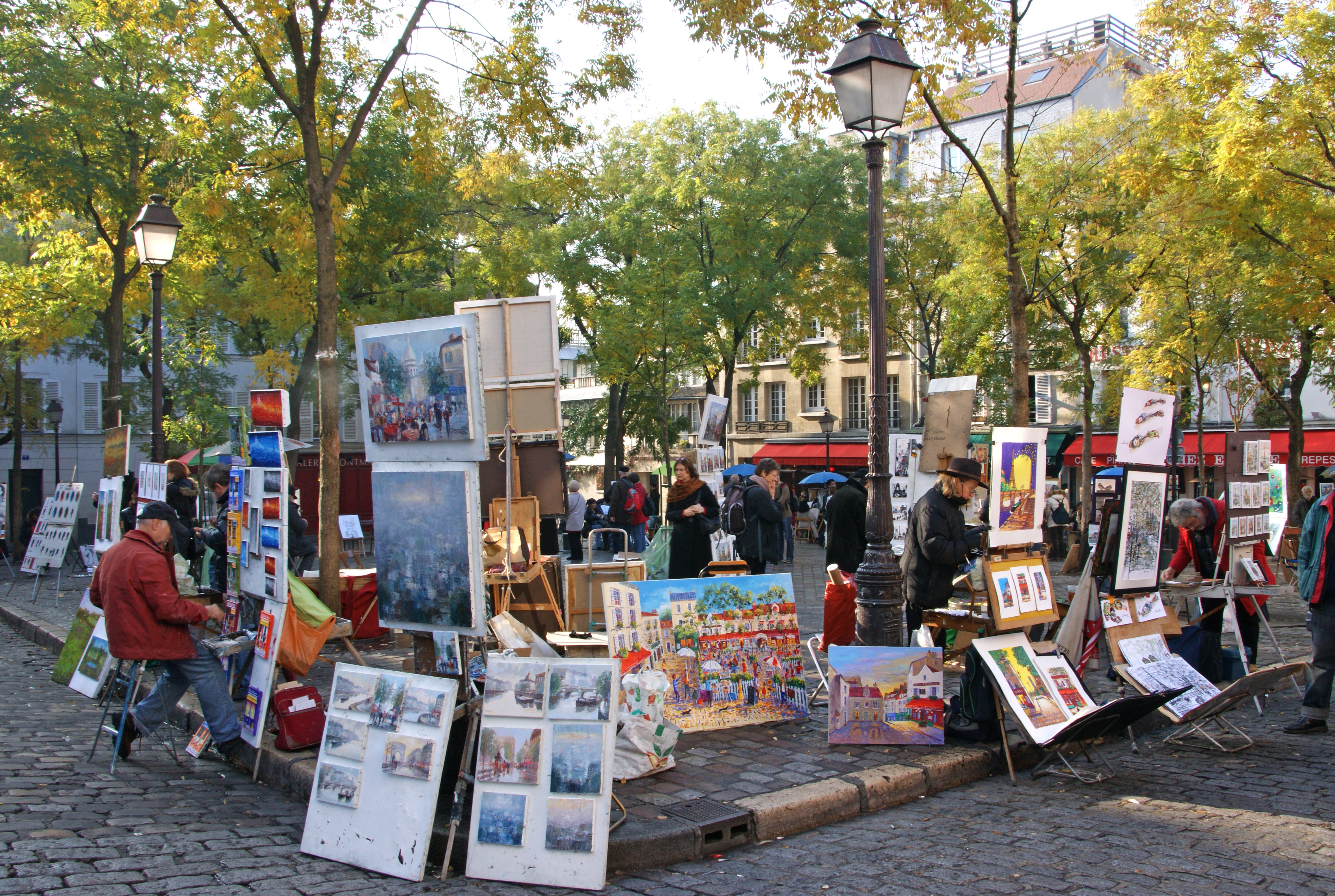 Place du Tertre: è una pittoresca piazza alberata ubicata nel XVIII arrondissement di Parigi, nel quartiere di Montmartre a pochi passi dalla Église Saint-Pierre de Montmartre e della più nota basilica del Sacro Cuore. Essa è ubicata ad un’altezza di 130 metri rispetto al livello della città di Parigi ed ha la caratteristica di essere il punto di ritrovo di pittori e caricaturisti che eseguono ritratti per i turisti, i quali frequentano numerosissimi la piazza. Su di essa si affaccia l’antico ristorante À la Mère Catherine fondato nel 1793. Qui, secondo la tradizione, nacque il termine “bistrot”. Si narra infatti che, nel 1814, dei cosacchi russi si fermarono in questo locale durante un soggiorno a Parigi. Essi, ordinando da bere, incitavano gli osti a fare presto, urlando così “bystro!” (in cirillico “быстро !”, che vuol dire appunto “presto, veloci”). Oggi per bistrot si intende dunque una trattoria, anche se l’origine del nome è ancora controversa.