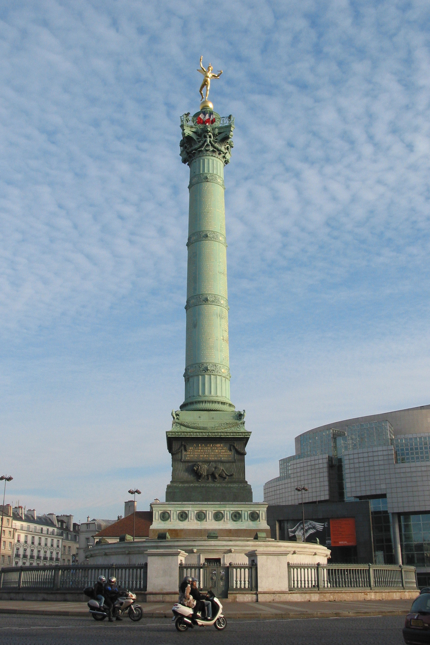 Bastiglia: la Bastiglia fu una fortezza eretta a Parigi per volontà di Carlo V di Francia tra il 1367 e il 1382 per rafforzare le mura orientali della città, e a difesa della Porte St-Antoine. Assaltata il 14 luglio 1789 per rubarne le armi e liberare i prigionieri, fu poi lentamente demolita per recuperarne materiali edili. Era alta 24 metri (come un palazzo di 7 piani ai nostri giorni), aveva pianta rettangolare di 66 metri di lunghezza per 34 di larghezza, otto torri, due cortili interni detti Cortile grande e Cortile del pozzo, ed era circondata da un fossato alimentato dalla Senna vicina, sicché vi si accedeva solo tramite ponte levatoio.